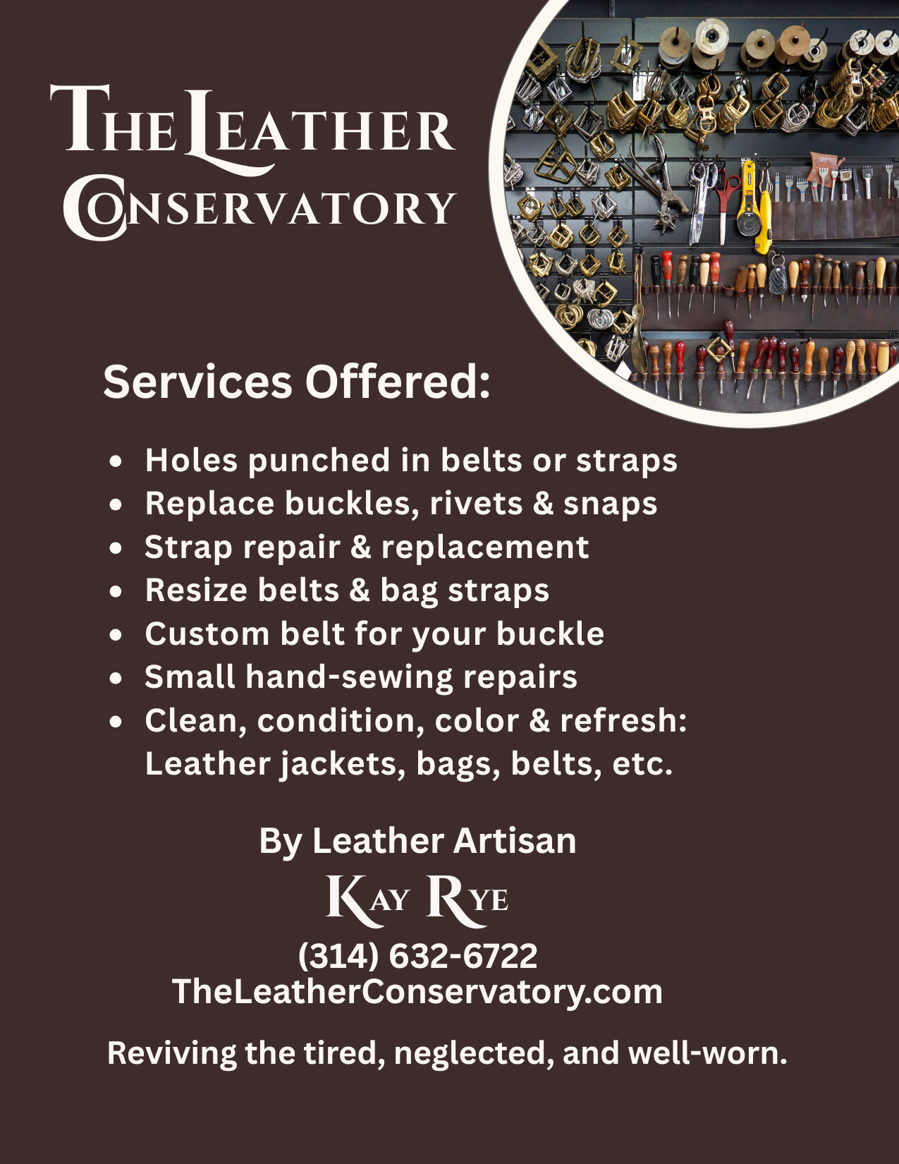 Got a favorite bag, belt, or leather item that needs some TLC? Let’s chat!